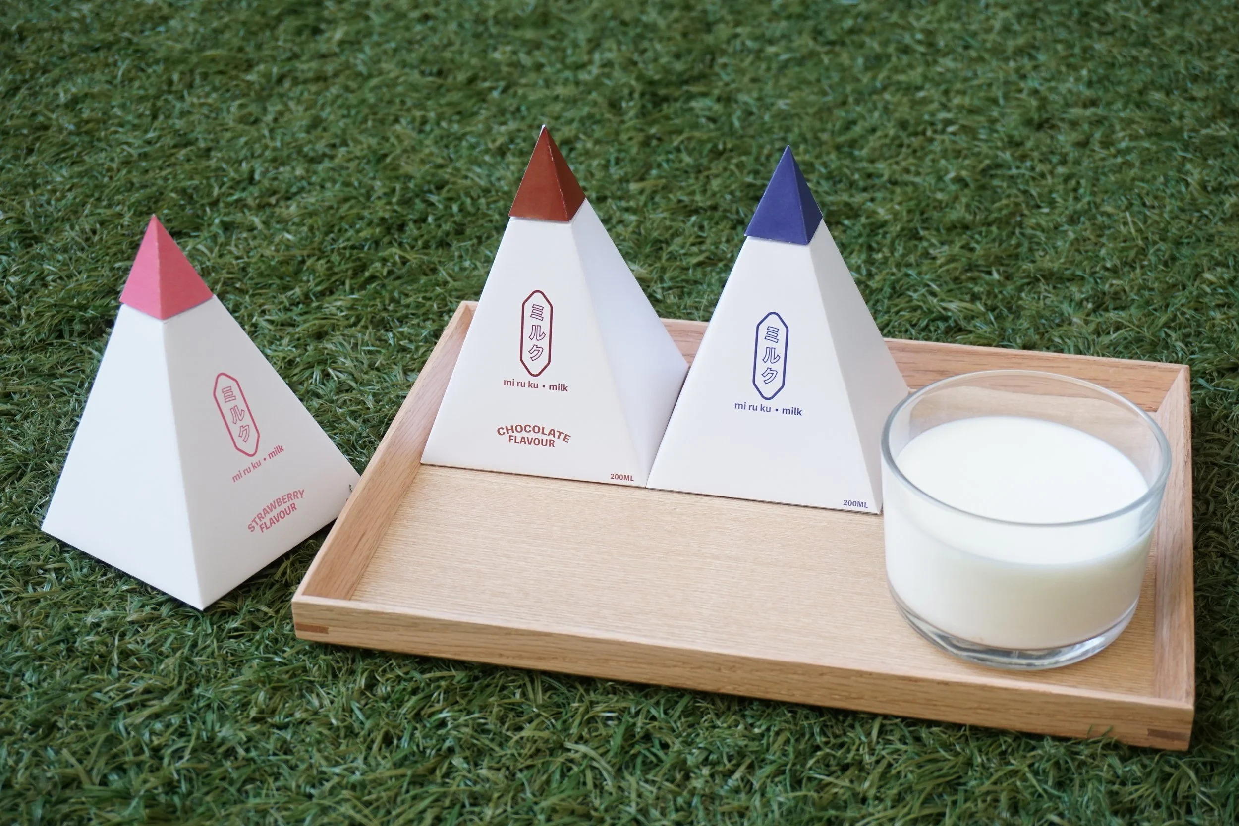 After experimenting with different forms, the pyramid shape worked best as no matter how much he fiddled around with the carton, it didnt topple over. Its form also allowed for the straw to be integrated into the carton, creating a sustainable product.