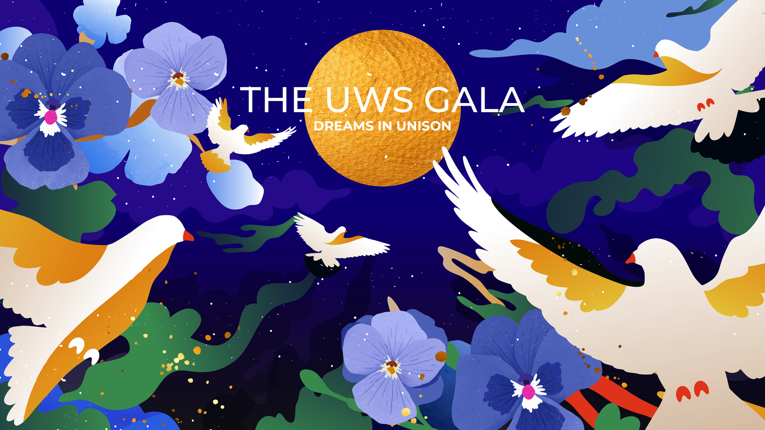 Birds in flight are often used to symbolise freedom - or in this case, empowerment - and we use this metaphor as the anchor of our design motif. Instead of a cage, our birds take flight from a beautiful garden; a place where the seeds of a new future are planted, where the dreams of bright young talents are nurtured. At the UWS Gala 2024, the time has come for us to realise our common united goal.